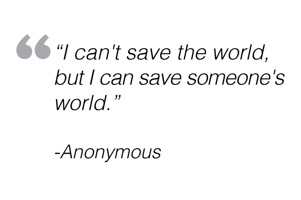 “I can’t save the world, but I can save someone’s world.” (Anonymous)